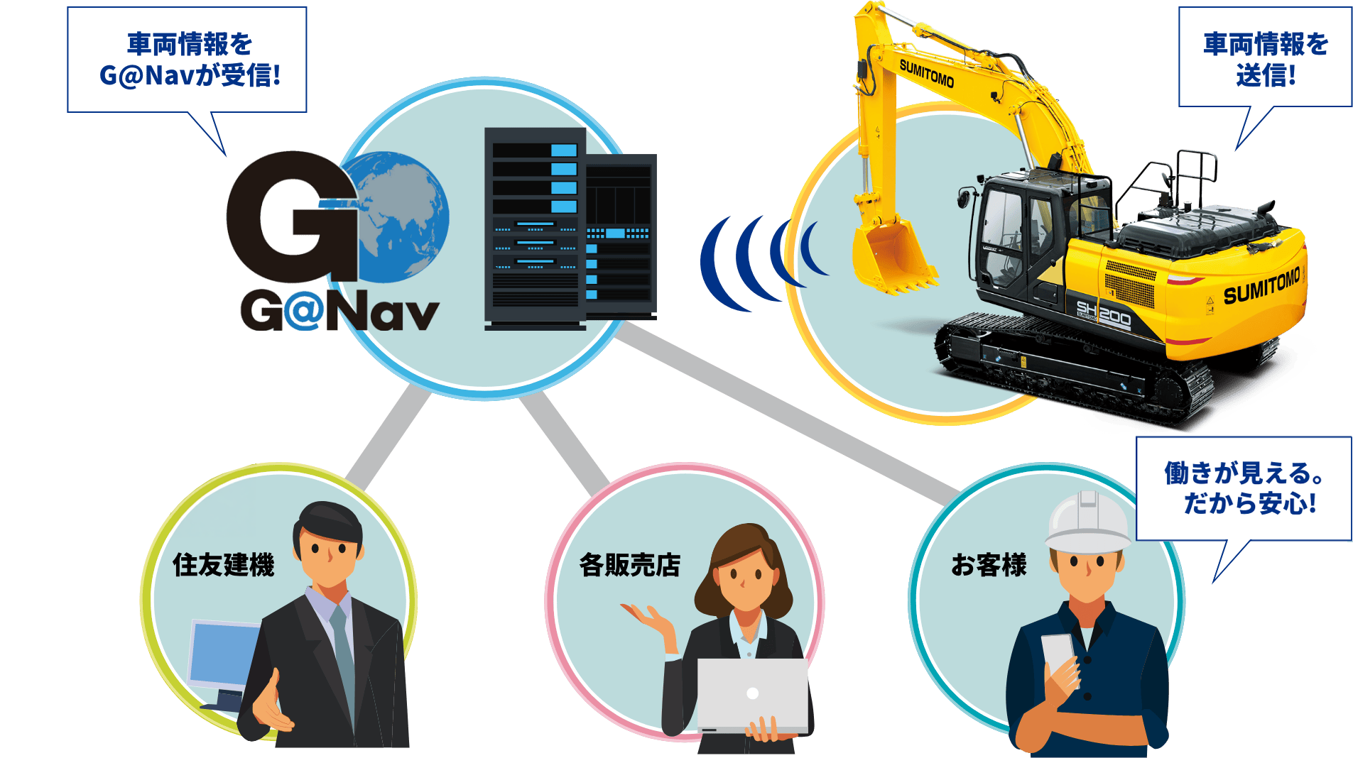 G@Navは、インターネットを通じてオフィスや外出先から稼働機の情報を管理でき、
