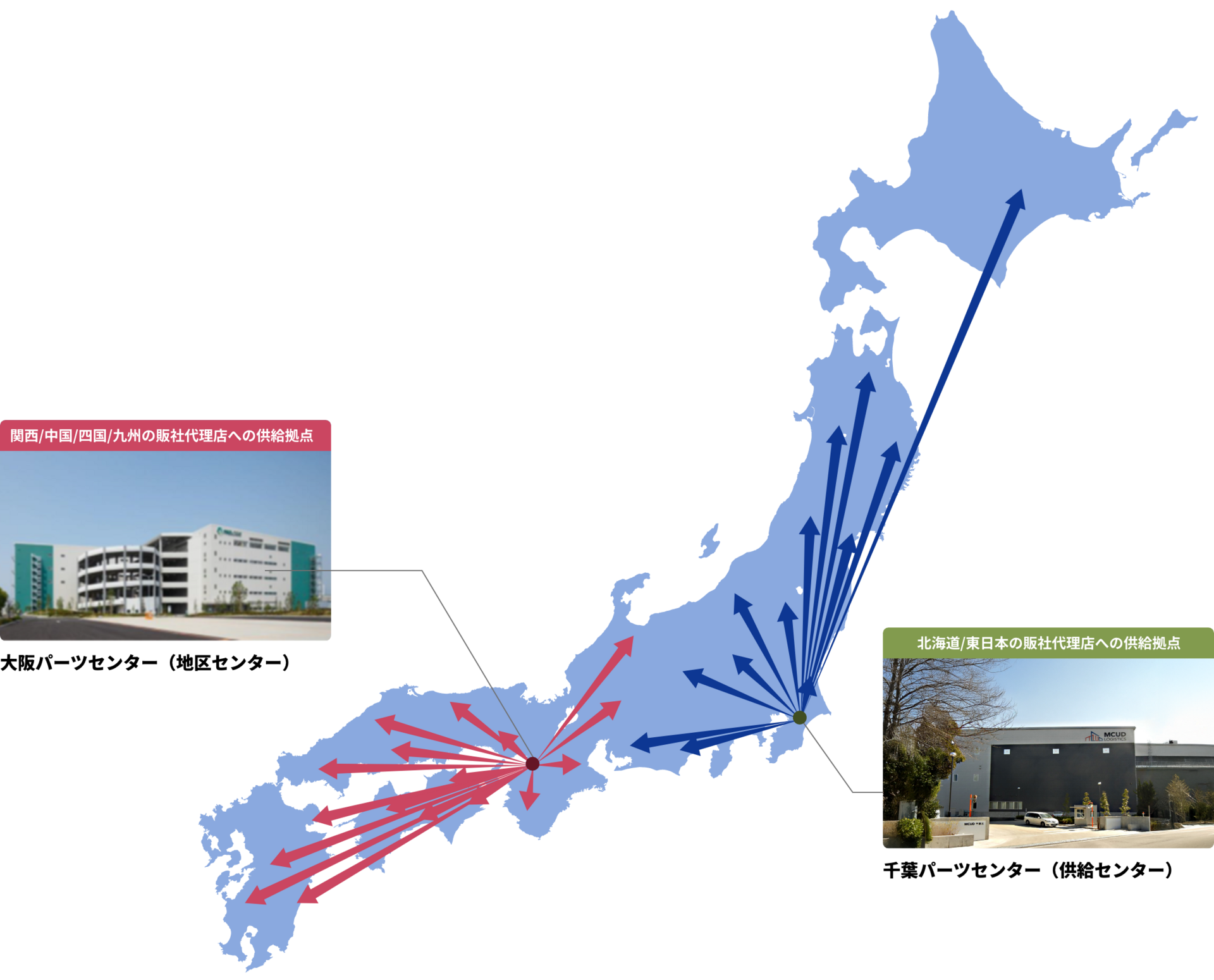 当社製品をご利用いただくすべてのお客様に、必要な部品を適切かつ迅速にお届けできる体制を整えています。